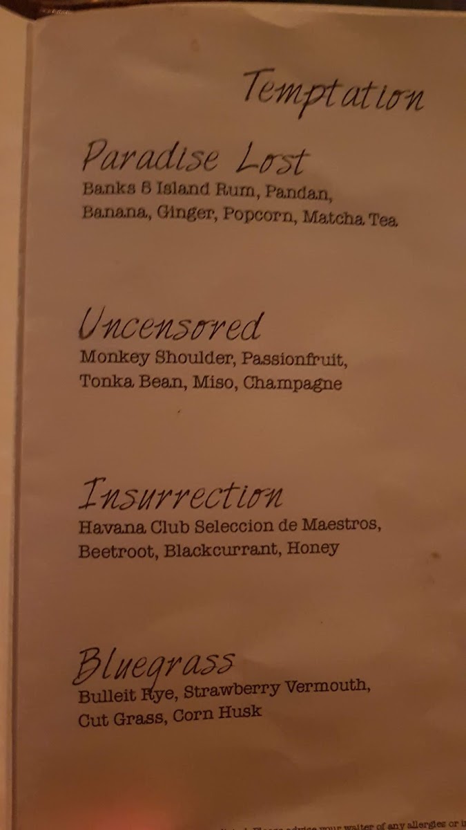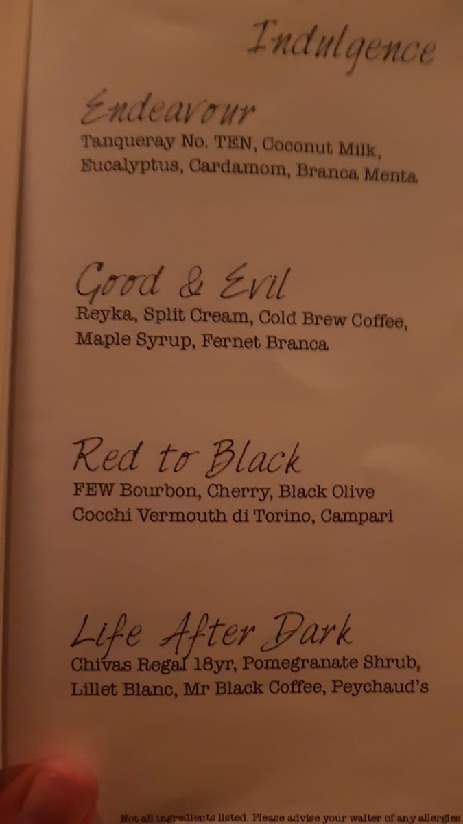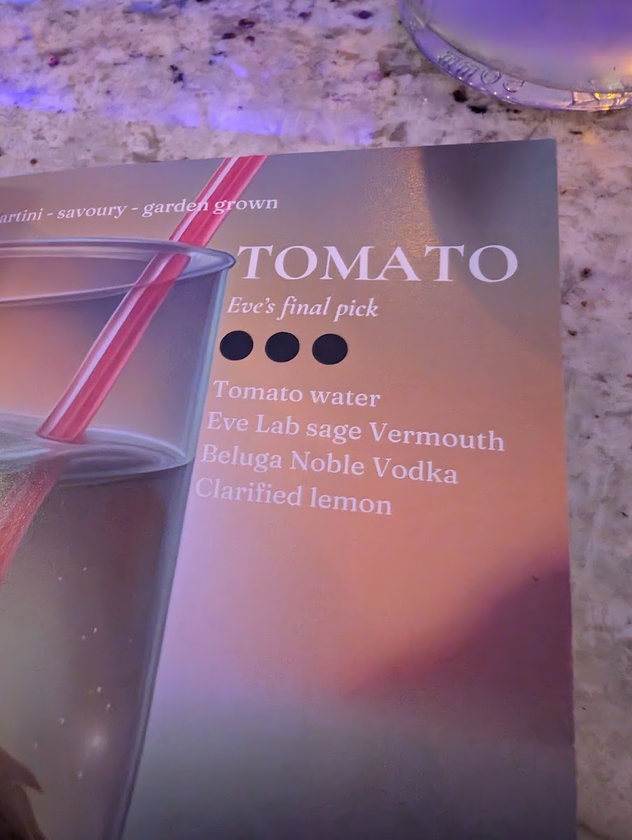Eve Bar Covent Garden Menu